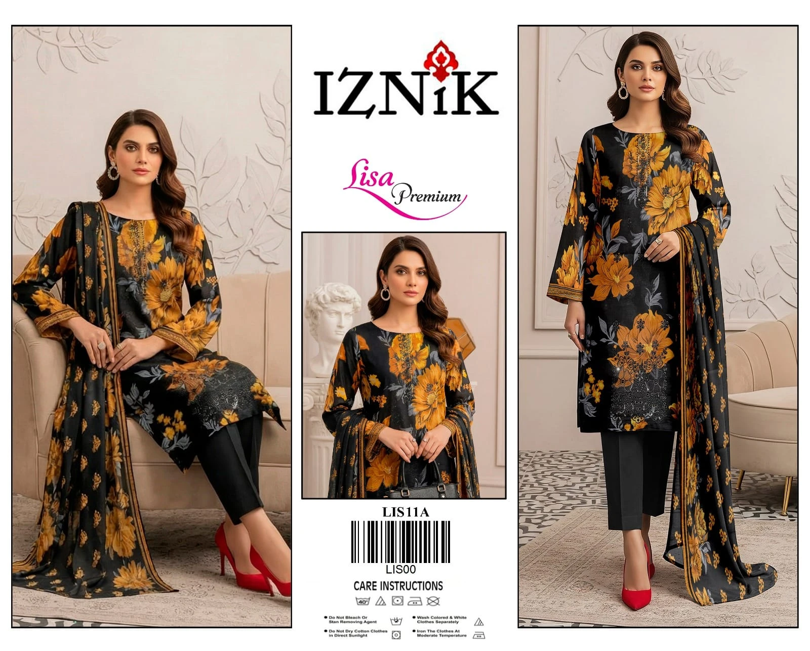 1 Embroidered Top + 1 Plain Bottom + 1 Embroidered Dupatta.