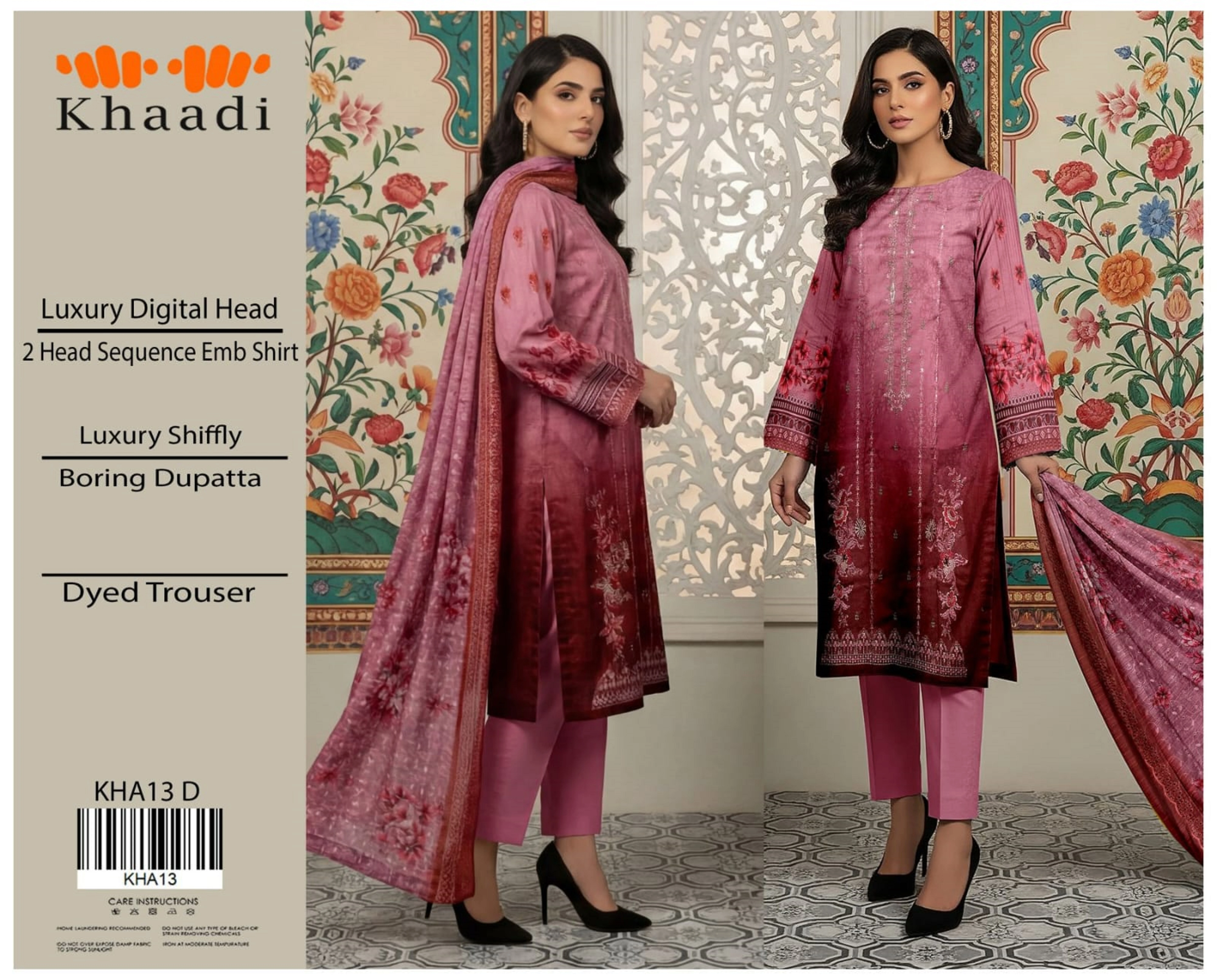 A fusion of high-definition digital printing with architectural fashion design. This line features bold, original digital artworks – from abstract geometric patterns to modern floral interpretations – rendered on premium matte-finish digital lawn. Each piece is crafted with structured tailoring, clean lines, and intentional silhouette definition, making it ideal for corporate formal settings, gallery visits, or sophisticated urban occasions. The collection balances artistic expression with wearable elegance, redefining printed lawn as a canvas for contemporary art.