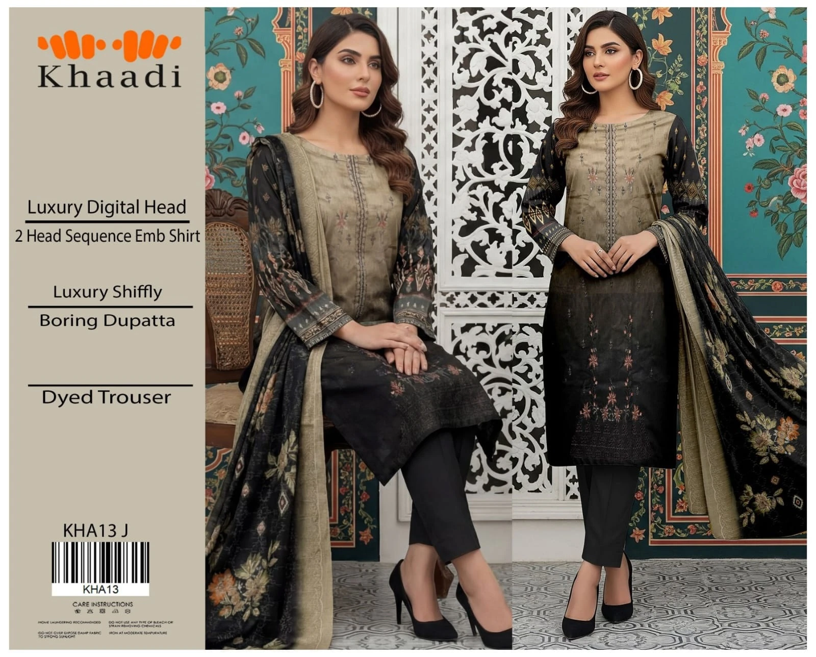 A fusion of high-definition digital printing with architectural fashion design. This line features bold, original digital artworks – from abstract geometric patterns to modern floral interpretations – rendered on premium matte-finish digital lawn. Each piece is crafted with structured tailoring, clean lines, and intentional silhouette definition, making it ideal for corporate formal settings, gallery visits, or sophisticated urban occasions. The collection balances artistic expression with wearable elegance, redefining printed lawn as a canvas for contemporary art.